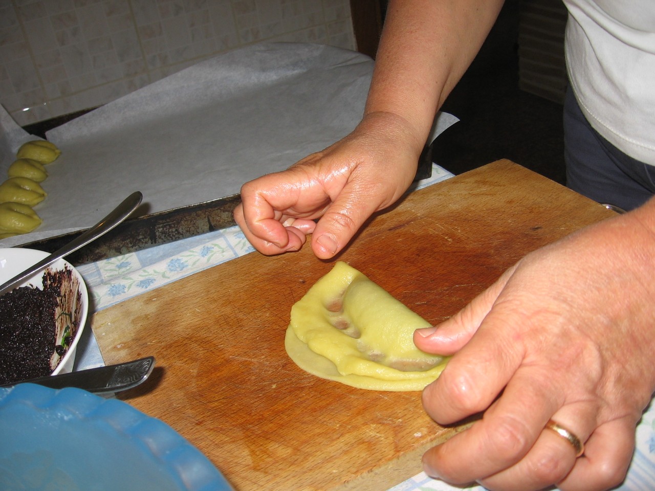 - Prendere le estremità della mezzaluna e unirle, quasi come un tortellino!